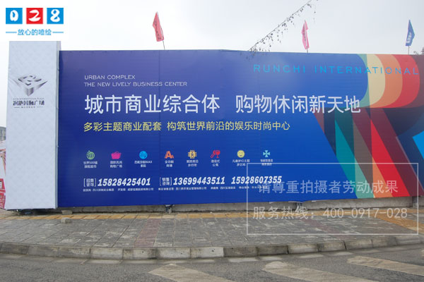 成都圍墻噴繪制作 圍墻噴繪簡介:噴繪就是一種基本的、比較傳統的表達方式,它具有其它表現手法不可替代的特點和優越性:相對其它手繪技法,它的表現更細膩真實,可以超寫實的表現物象,達到以假亂真的畫面效果。相對電腦、攝影等現代技法,它所表現的物象更自然、生動。